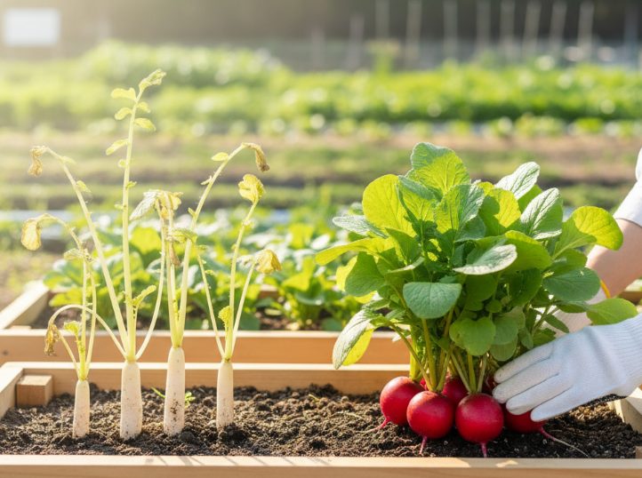 さらに、二十日大根のような根菜類にとって最も深刻なのは、本来、根を太らせるために使われるべき養分が、茎を伸ばすことばかりに消費されてしまう点です。その結果、いつまで経っても実が大きくならない、または全く膨らまないといった栽培の失敗に直結します。