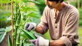- 支柱立て:成長が進むとオクラの茎が倒れやすくなるため、支柱を立てて補強します。支柱を設置することで、風による倒伏を防ぎ、健康な生育をサポートできます。